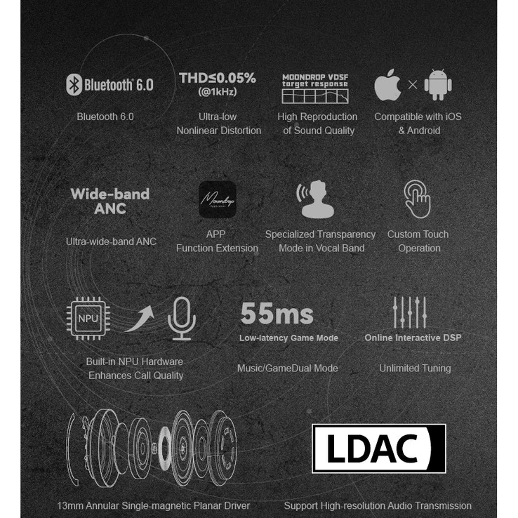 Moondrop Space Travel 2 Ultra Bluetooth 13mm Planar Driver TWS True Wireless