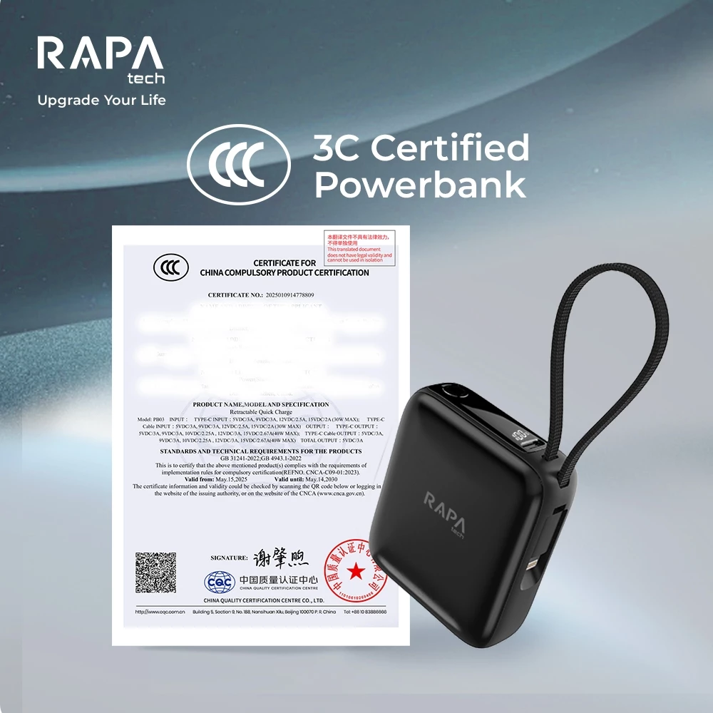 Rapatech CCC Powerbank Origin Link LX17 PD22,5W 10000Mah Ultra Mini Size Built in Dual Cable
