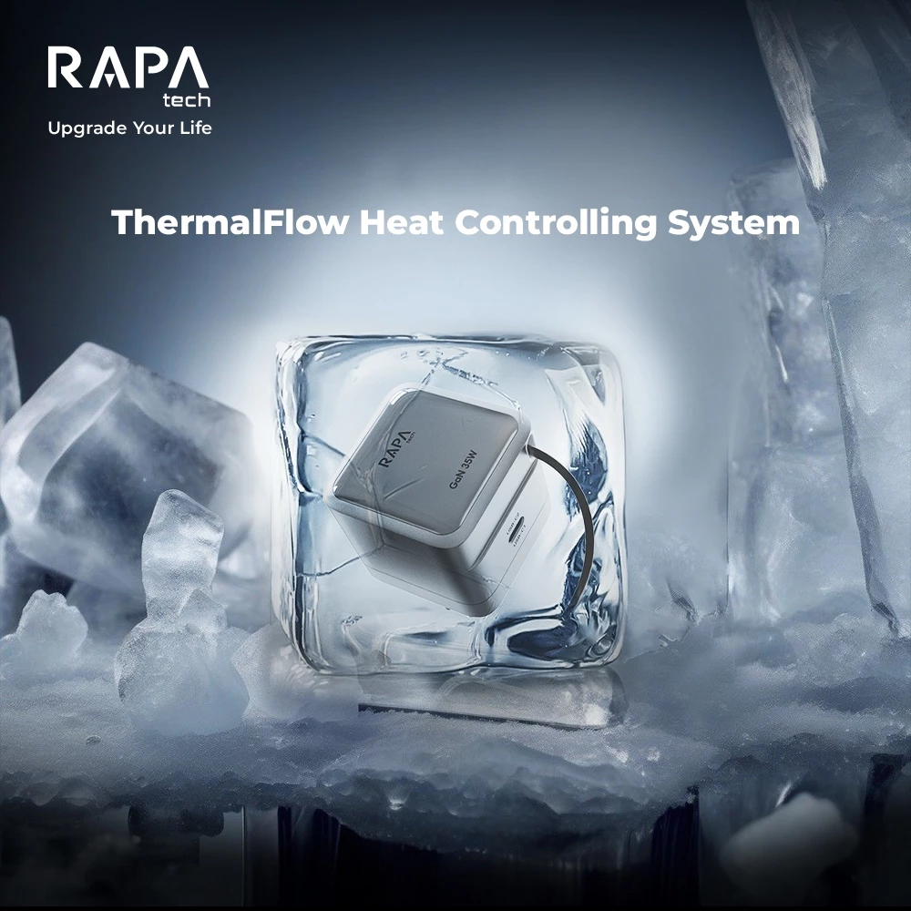 RAPAtech Power Loop GaN PD 35W 67W Adaptor Charger with Dual Port Retractable Cable USB-C